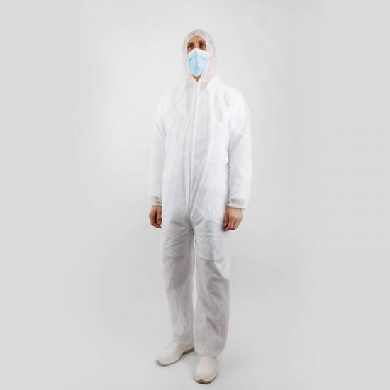 Jednokratni kombinezon ARLE beli. Sirovinski sastav: polipropilen. Karakteristike: kapuljača s elastičnim pritezanjem. Zatvaranje na patent zatvarač. Rukavi i nogavice s elastičnim pritezanjem.
